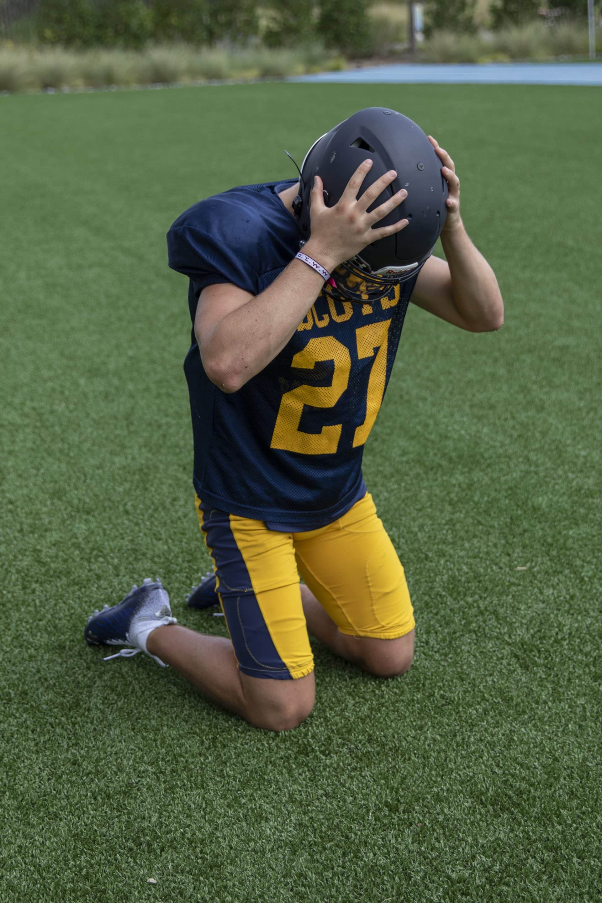 - Clutching the head after an injury