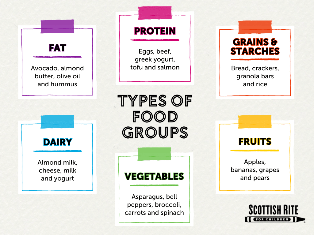- Each meal should contain at least three food groups.